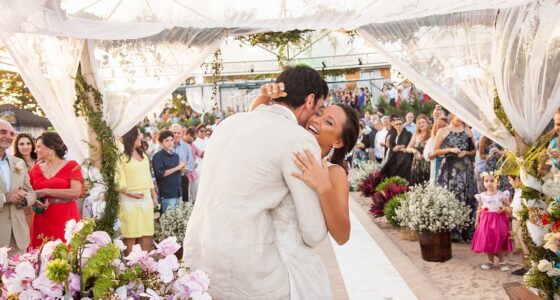 Para Natasha e José Luis o casamento foi do jeitinho que sempre sonharam, um dia maravilhoso. Como um dos pontos auges desse dia tão especial, eles relembram da cerimônia, momento muito emocionante, e também quando decidiram entrar no mar no meio da festa – e a melhor parte, que vários convidados foram juntos com eles. Que energia!