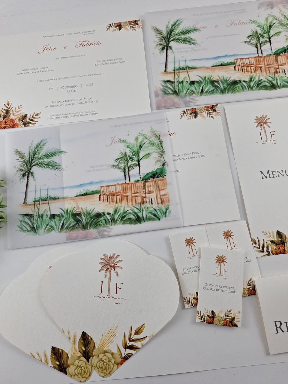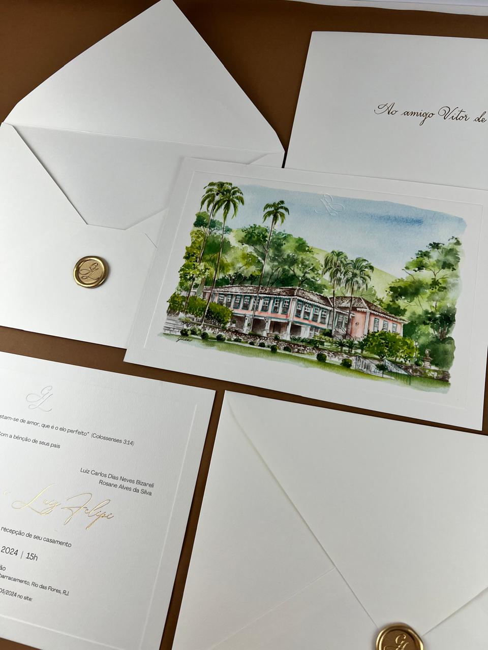 A identidade visual personalizada traz personalidade e exclusividade para cada projeto e pode ser usada muito além de apenas para o convite do casamento, mas como também para o kit toillet, menu, caixa dos padrinhos, lágrimas de alegria, leques. As opções são inúmeras. São detalhes que acabam fazendo toda a diferença.