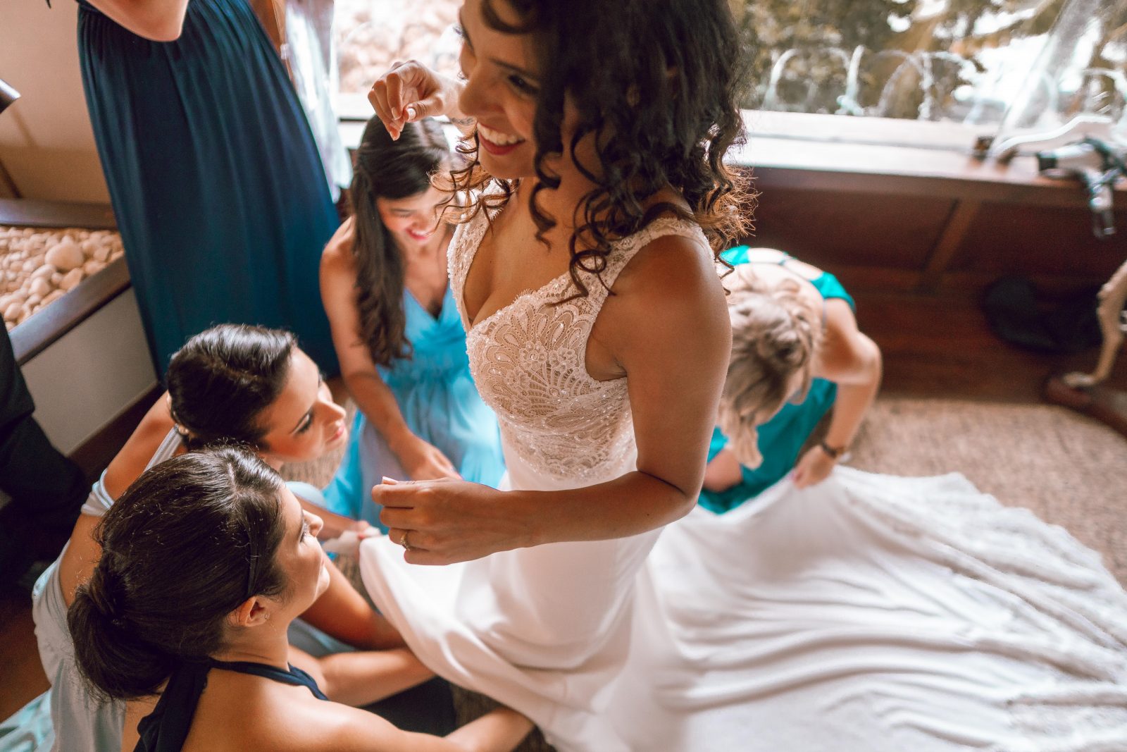 Aline: É difícil escolher, acho que para mim foi tudo. Trabalhei com eventos por 10 anos, mas planejar nosso casamento foi diferente. Ser a noiva é um outro tipo de emoção, você não oferece as opções, você escolhe. Cada detalhe foi pensado com muito carinho, tudo tinha muito da gente e um pouco de cada um das pessoas que amamos, todo mundo participou de alguma forma. Nossa cerimônia foi muito emocionante, foi leve e engraçada. Meu primo foi o celebrante e um dos melhores amigos do Jasper que fala português traduziu, deixando tudo bem pessoal e único.
