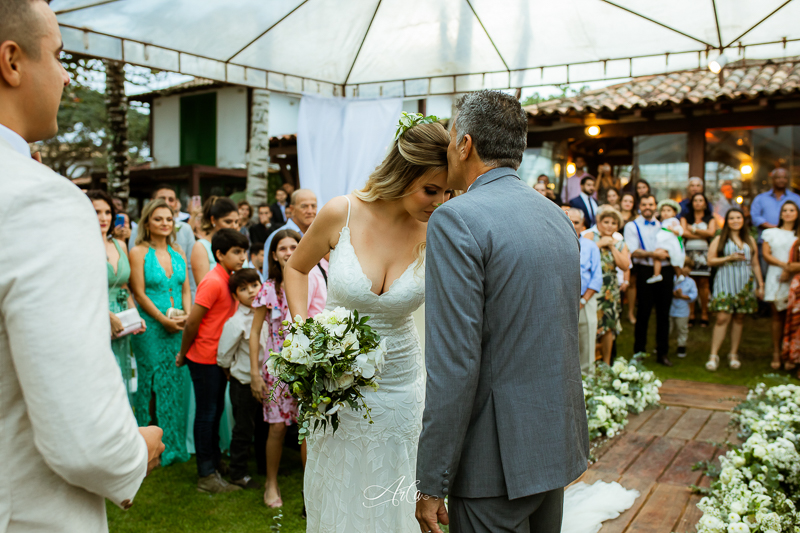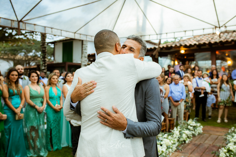 Júlia: Acho que a alegria das pessoas, a energia daquele dia estava surreal! Tínhamos passado por uma grande tempestade no dia anterior na cidade e eu estava com meu coração muito apreensivo, e quando cheguei no casamento, a fé e energia das pessoas me deixaram extremamente feliz! E também, entrar naquele lugar e encontrar no altar o amor da minha vida.