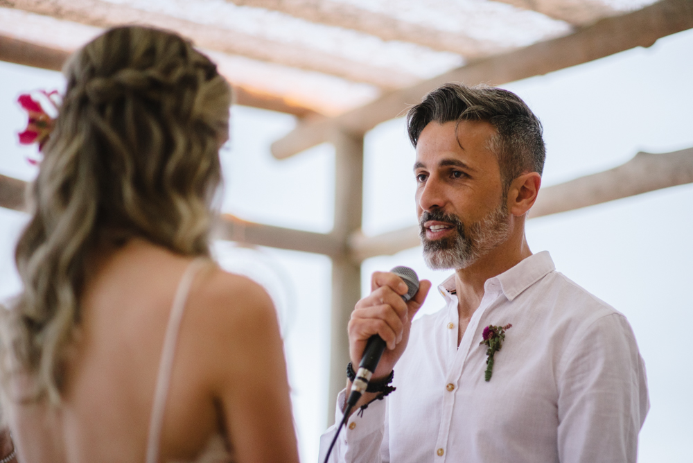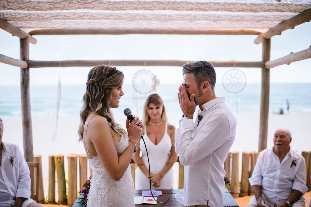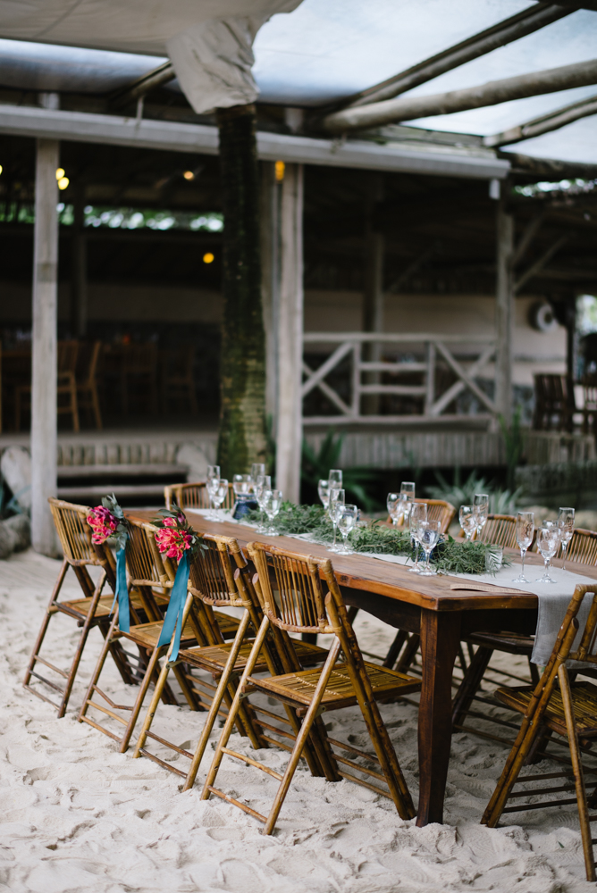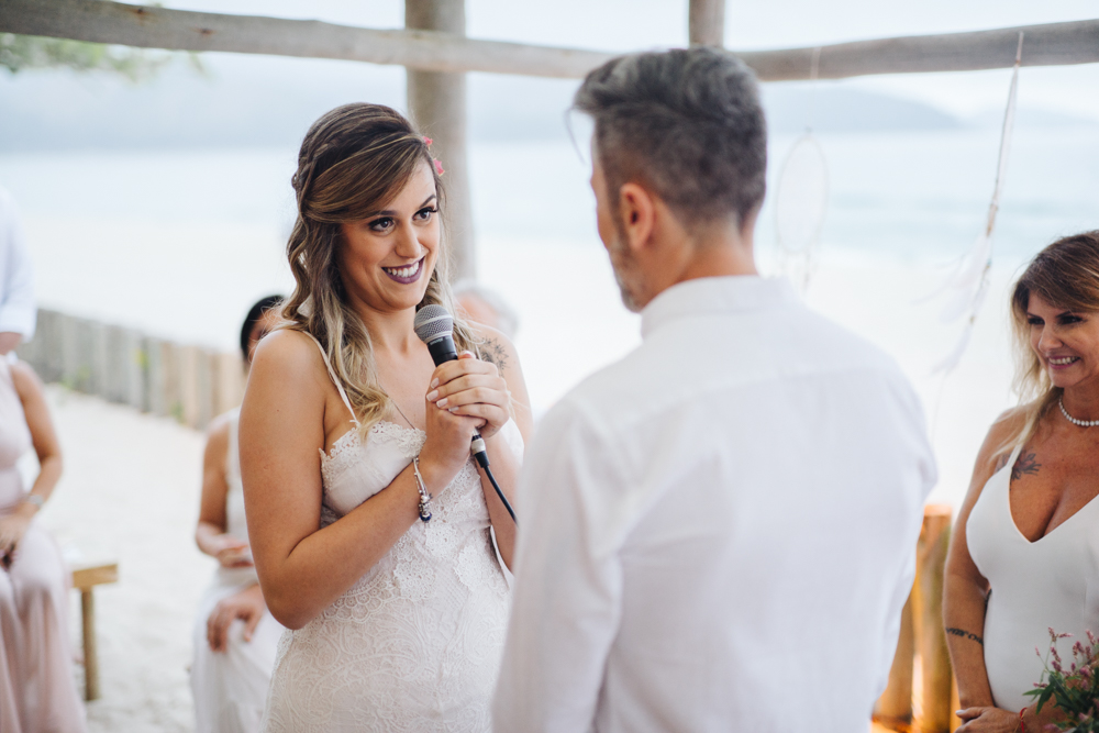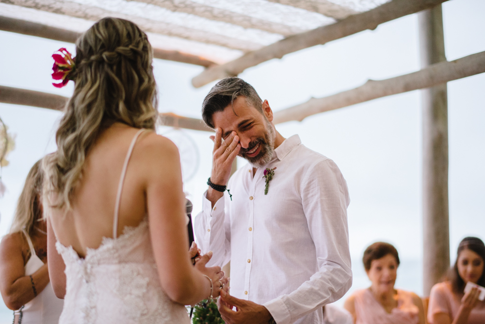 Para esse dia tão especial, o casamento foi assinado com uma decoração boho – que combina perfeitamente com o clima praiano. Precisamos também dizer que adoramos o dress code estabelecido para os convidados. Todos de branco deu um charme a mais para o casamento.