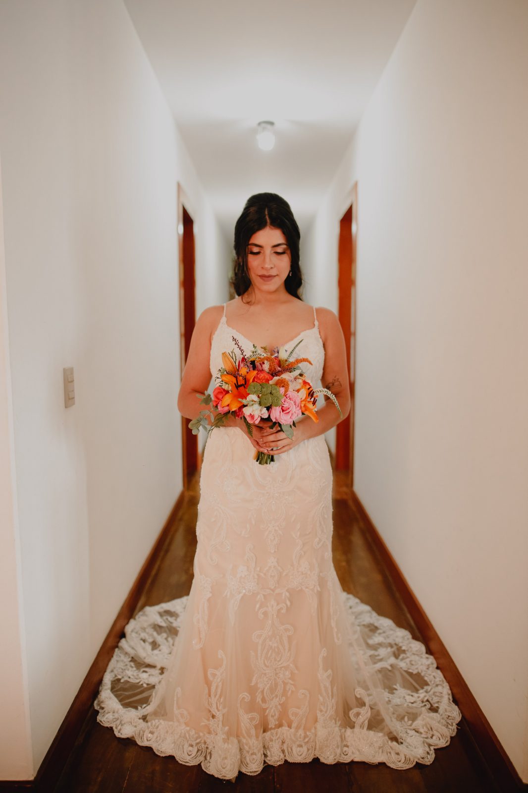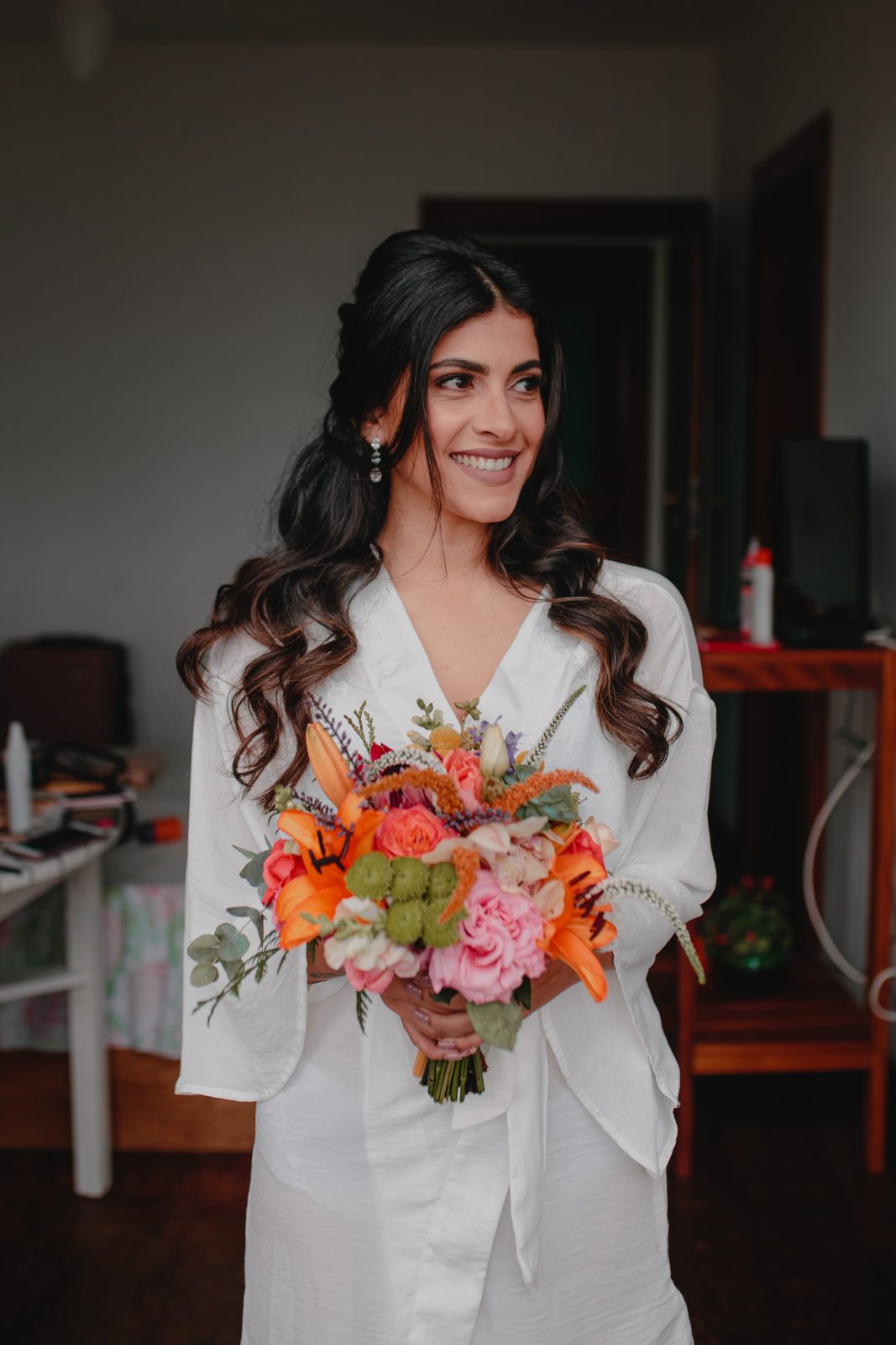 Outra coisa: a vida toda sonhei em casar na praia ao pôr do sol. Na semana do meu casamento só chovia, comecei a ficar desesperada. Na noite anterior passei a noite chorando ao ouvir a chuva forte cair. Acordei no dia do casamento super triste ao ver o céu branco de tantas nuvens e chuva. Mas com o passar das horas e com o apoio da minha mãe, minha irmã, meu noivo e toda a equipe que escolho pra estar ao meu lado, a paz reinou. Então percebi que Não adianta surtar pelo que não está sob nosso controle. O melhor é relaxar e tentar focar no que podemos resolver.”