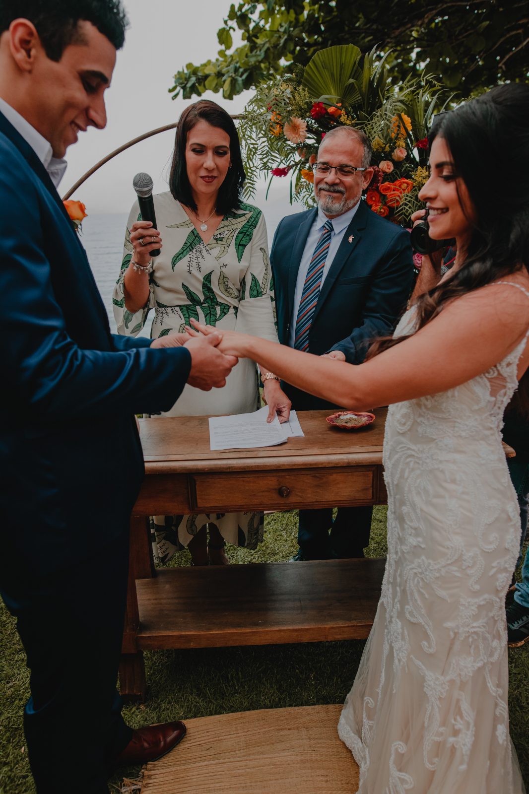 Como ponto auge do casamento, a noiva disse que foi quando entrou de mãos dadas com seu pai e seu filho, Ben, de 5 anos. -”Ser entregue pelos dois ao homem da minha vida, que estava chorando no altar, foi muito emocionante. E o momento dos votos, claro. Foram os momentos mais marcantes pra mim.”