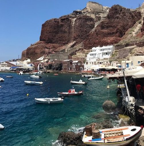 No último dia, fomos para Ammoudi Bay. Simplesmente um dos lugares mais lindos de Santorini. Quando você chegar lá, você vai encontrar um caminho pela costa andando que te leva para o outro lado. Não é praia, o pessoal fica em cima da pedra tomando sol, mas o legal de lá é a agua que é super clara e o ponto auge é uma “pedra do pulo” que TEM que ir!!