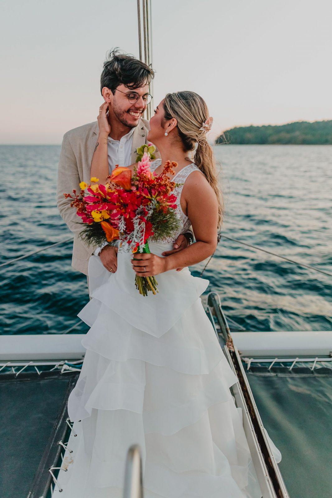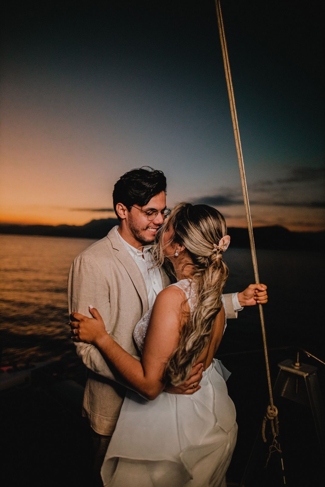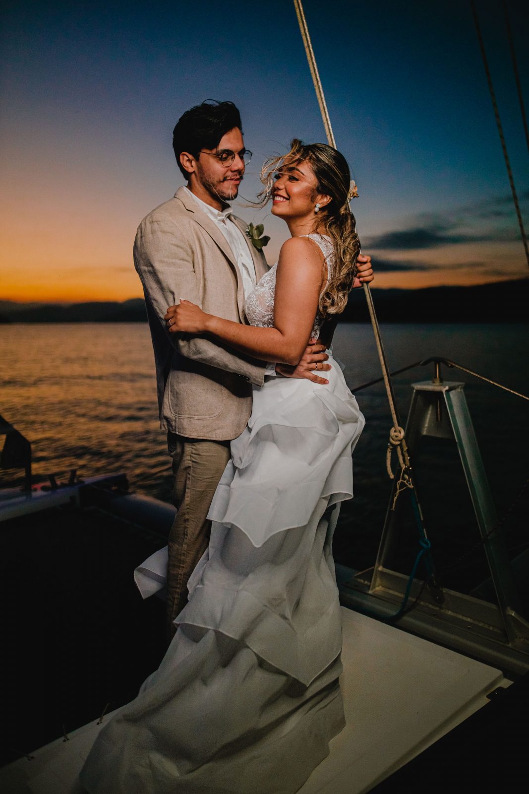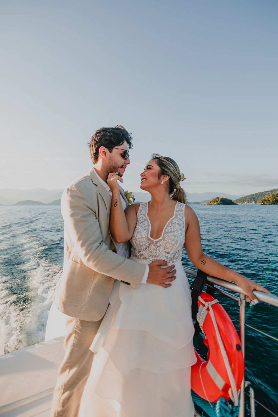 E Marcella e Fernando celebraram a data que seria do casamento deles, com uma linda cerimônia à bordo para poucos familiares, seguido de fotos lindas ao pôr do sol registradas por Felipe Sales.