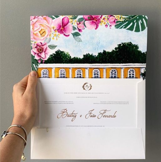 “Eu comecei com um pedido de amigos próximos para pensar no convite de casamento deles, realizado em Paris, na França. Para esse trabalho, eles queriam uma aquarela específica do lugar da cerimônia e flores que combinassem com essa comunicação visual. Acabei realizando todo o processo de concepção das aquarelas, adaptação delas em toda a comunicação visual e, posteriormente, imprimindo e especificando um por um. Depois disso, outras pessoas começaram a se interessar pelo meu trabalho, seja para a confecção do todo, seja para arte que vai na comunicação visual. “