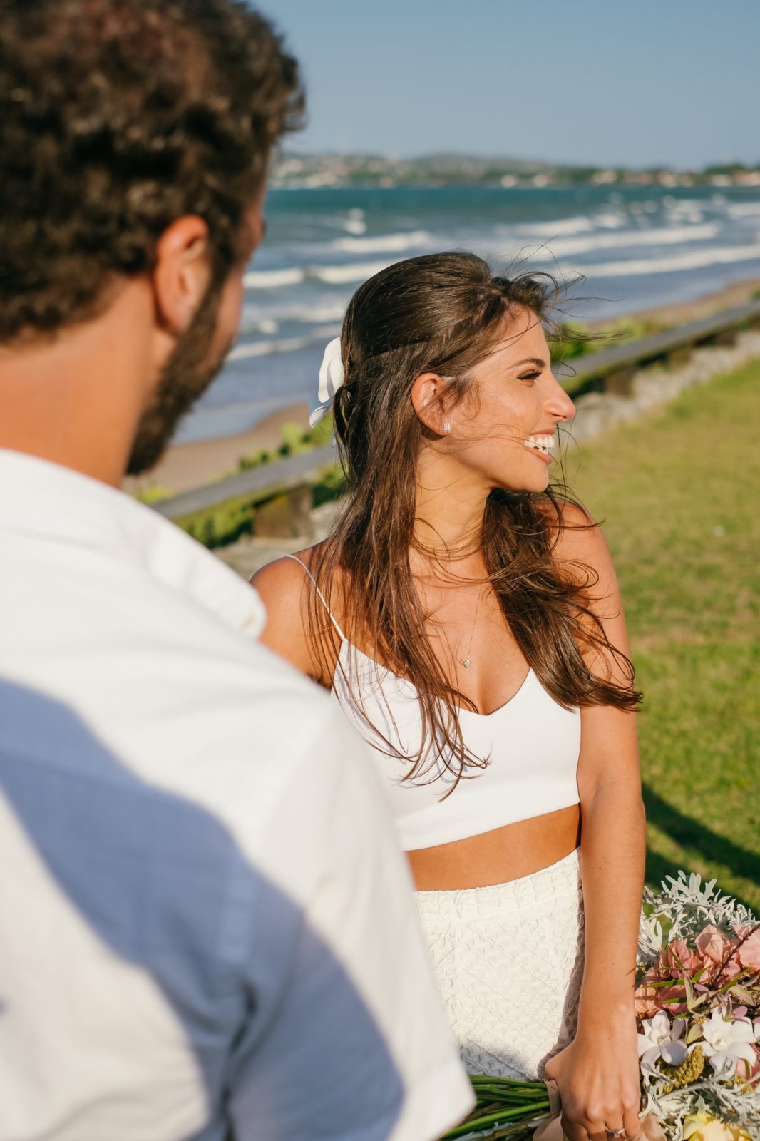 Assim que ficamos noivos, eu havia pensado em casar no meu condomínio de Búzios, porque é um lugar onde possuo muita memória afetiva. Por sinal, eu também brinco que foi lá onde eu conquistei o Binho de vez ( isso aconteceu no momento em que passamos a noite na rede conversando sobre a vida e desde então descobrimos que existia algo maior dentro de nós). Mas como o condomínio possui outras casas, eu acabei deixando essa ideia de lado – e tudo bem.